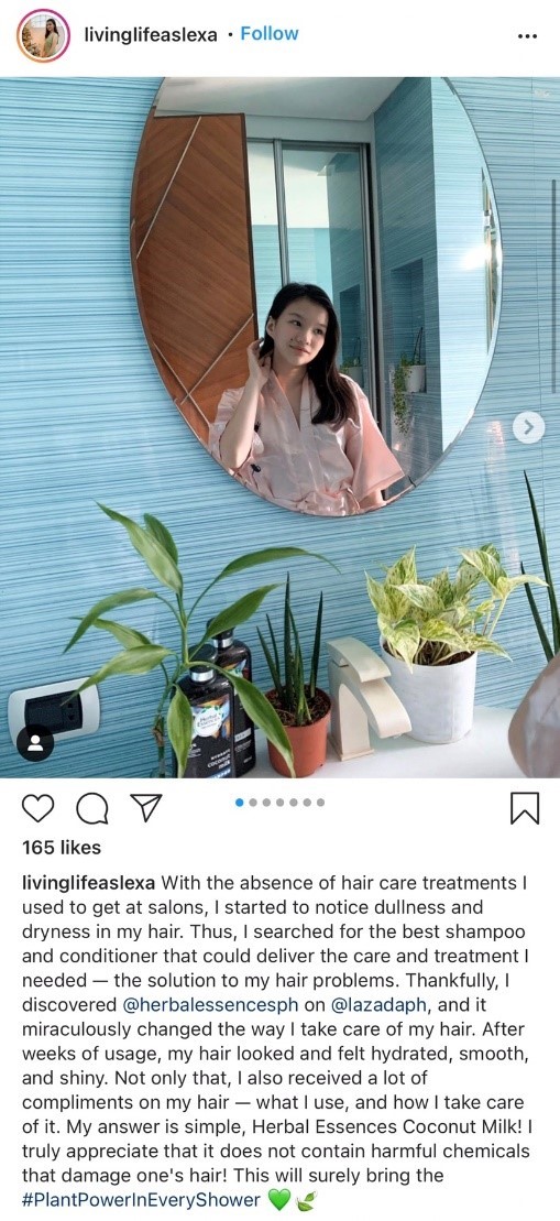 Alexandrea shared on her Instagram post that the absence of hair care treatments has made her notice how dull and dry her hair is. “Thankfully, I discovered @herbalessencesph on @lazadaph, and it miraculously changed the way I take care of my hair.